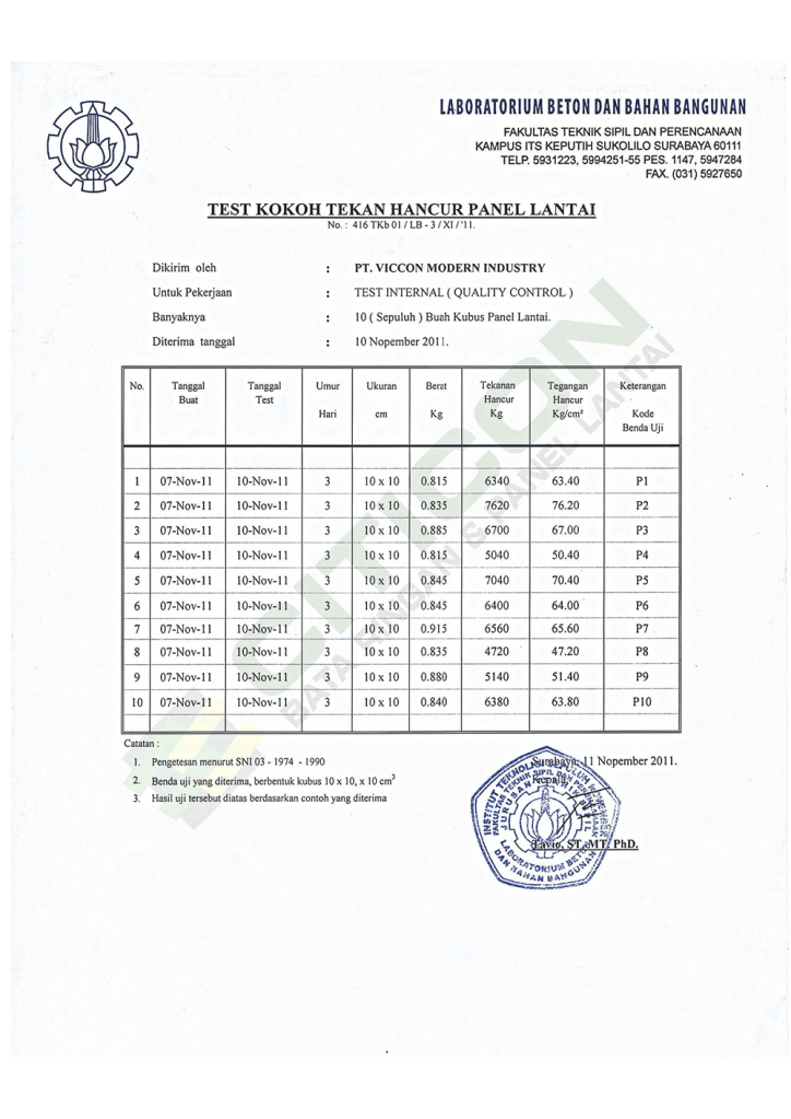 Sertifikat Tes Uji Panel Lantai Citicon
